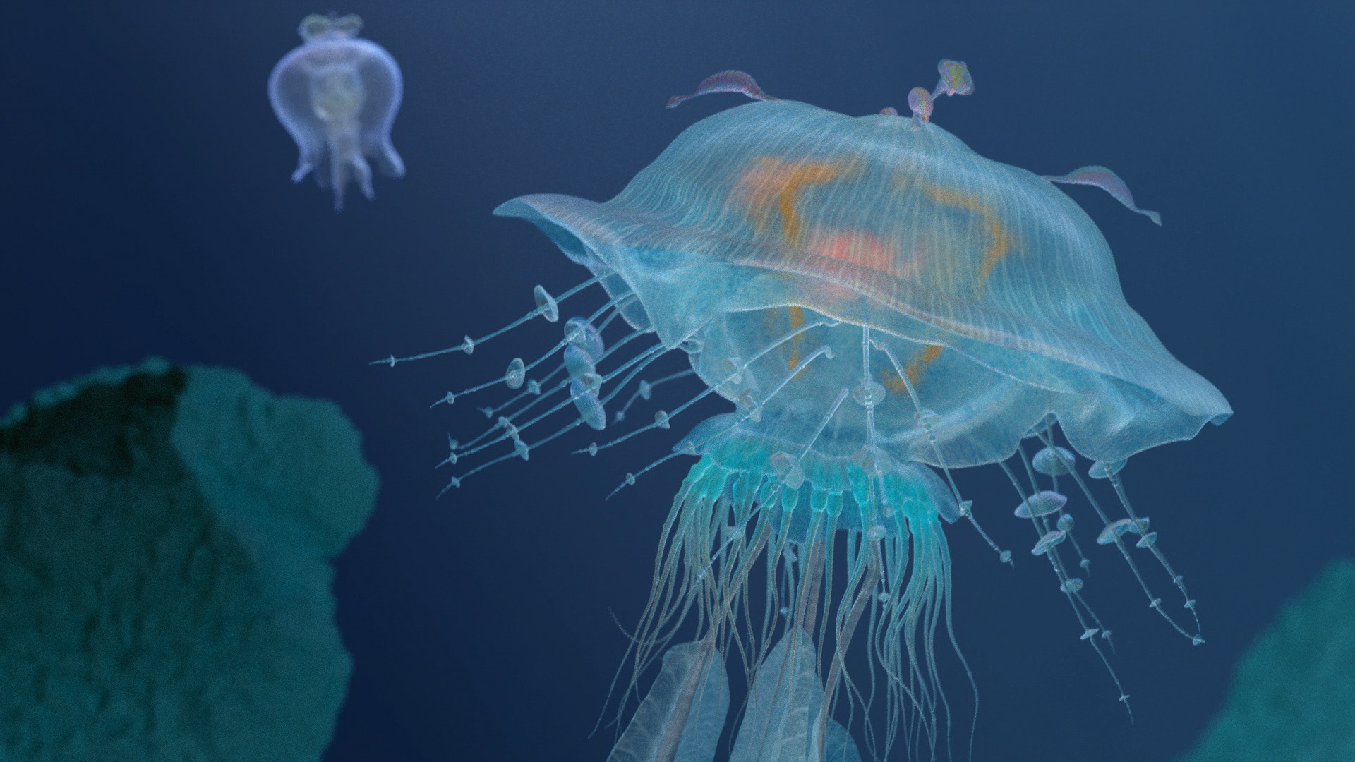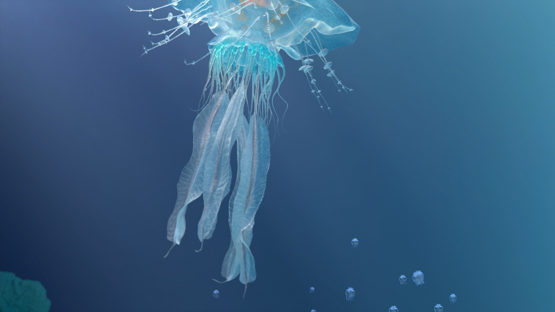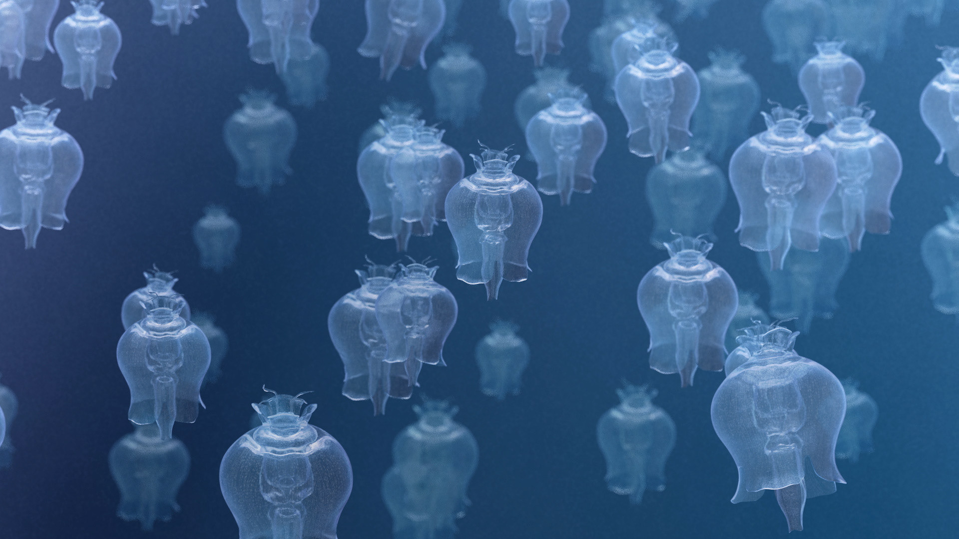 Personal project where I tried to create and animate various imaginary marine lifeforms (similar to jellyfish and other soft body invertebrates) living on an alien ocean world of Aurata. This is just a first take, more is to come.